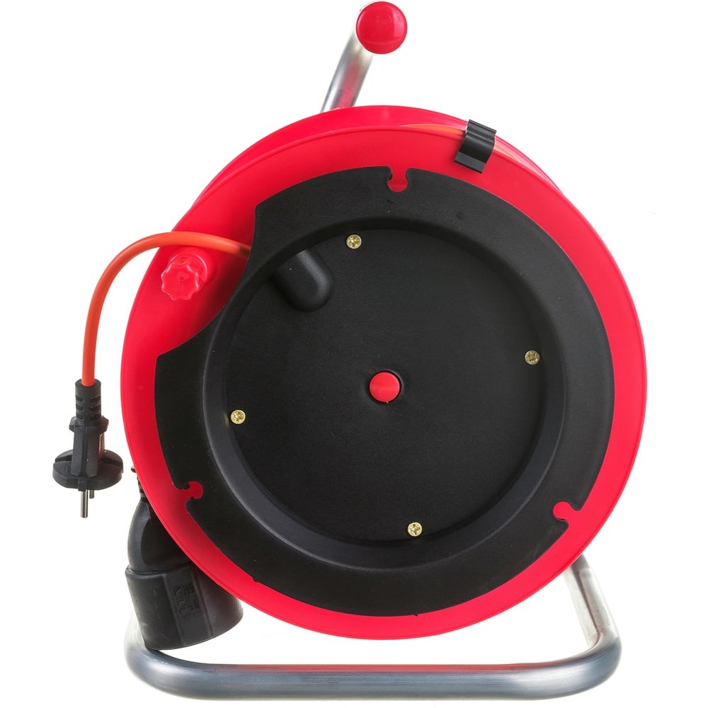 Силовой удлинитель на катушке К1-О-50, ПВС 2x0.75, 50м, 6А, выносная розетка б/з LUX 4606400417583 используется для подключения одного электроприбора на большом расстоянии (до 50 метров) от стационарной розетки 220 В. Провод располагается на катушке для удобства хранения и транспортировки изделия. Катушка установлена на прочной и устойчивой подставке. Наличие рукоятки облегчает переноску всей конструкции по рабочей площадке.
