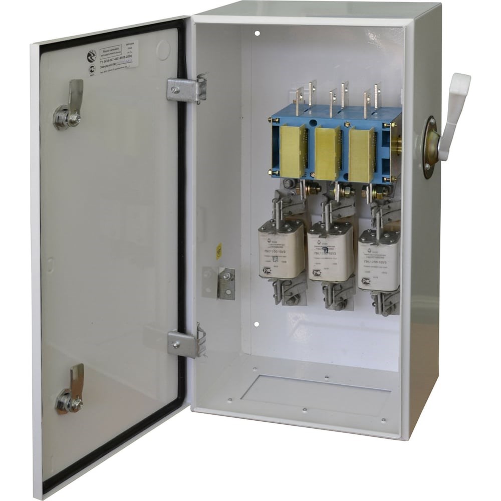 Силовой ящик Узола ЯРП 250 П У3 IP54 U450421 с рубильником и предохранителями, перекидной 250 Ампер предназначен для подключения двух линий ввода и одной отходящей линии. Имеет три положения оперирования: 1-линия подключается на первый ввод 2-линия подключается на второй ввод 3- линия подключается к отходящей линии. Особенностью является наличие рубильника ВР 32 на два направления (перекидного). Предохранители установлены неподвижно. Вводные проводники подключаются к рубильнику ВР 32, отходящие к неподвижным контактам-основаниям предохранителей. Отключение силовой цепи обеспечивается двойным видимым разрывом. Материал корпуса ВР32 - самозатухающий пластик, электробезопасный материал, стойкий к механическим воздействиям, тепловым воздействиям и динамическим ударам. Конструкция корпуса облегчена, что способствует лучшему охлаждению токопроводящих частей, снижению электрических потерь.