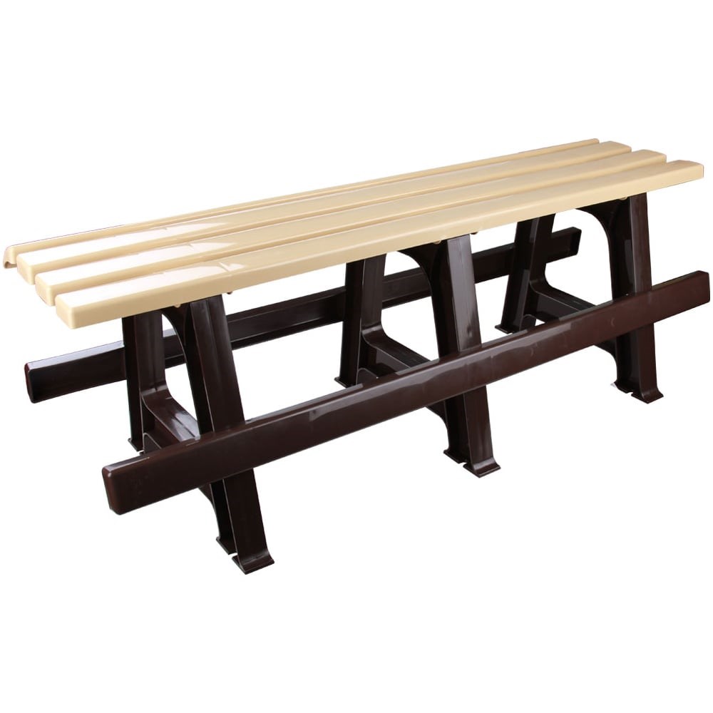 Удобное и практичное изделие с прекрасным внешним видом для парковой зоны или загородного дома. Скамейка легко собирается, усилена горизонтальными планками для большей устойчивости. На ножках скамейки имеются специальные пазы для фиксации на основании. Изделие выполнено из прочного и качественного полимера, при правильной эксплуатации данное изделие прослужит вам долгие годы.
