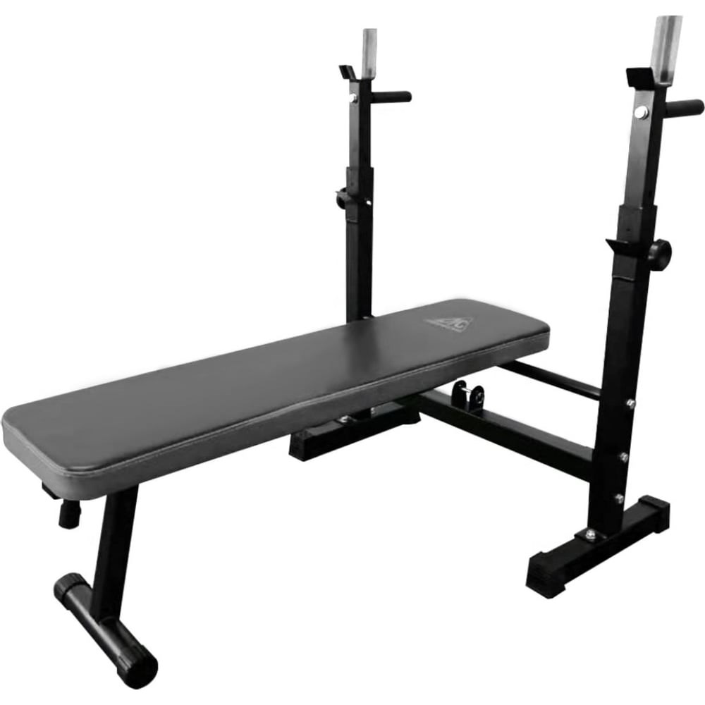 Скамья со стойками под штангу DFC D6453 подойдет для домашнего использования. Имеет складную конструкцию, компактные размеры и выдерживает до 180 килограмм веса. Скамья представляет собой единую складную конструкцию с основанием, обтянутым нескользящей тканью благородного серого цвета. У изголовья расположены две стойки с регулируемой высотой и двумя держателями. Верхний держатель штанги имеет ширину 62,5 см. Максимальная нагрузка на верхний держатель – 120 кг, на нижний –100 кг. На задней части стоек есть ручки для упражнений на руки. На ножках имеются противоскользящие валики и компенсаторы неровности пола. Скамью можно отрегулировать в трех положениях с разным углом наклона: наклон 30 градусов, горизонтальное, а также вертикальное положение (в сложенном виде). Стойки регулируются по высоте в диапазон от 81 до 99 см. Доступно 6 уровней с шагом в 3 см. Для регулировки на каждой стойке имеется специальная ручка.
