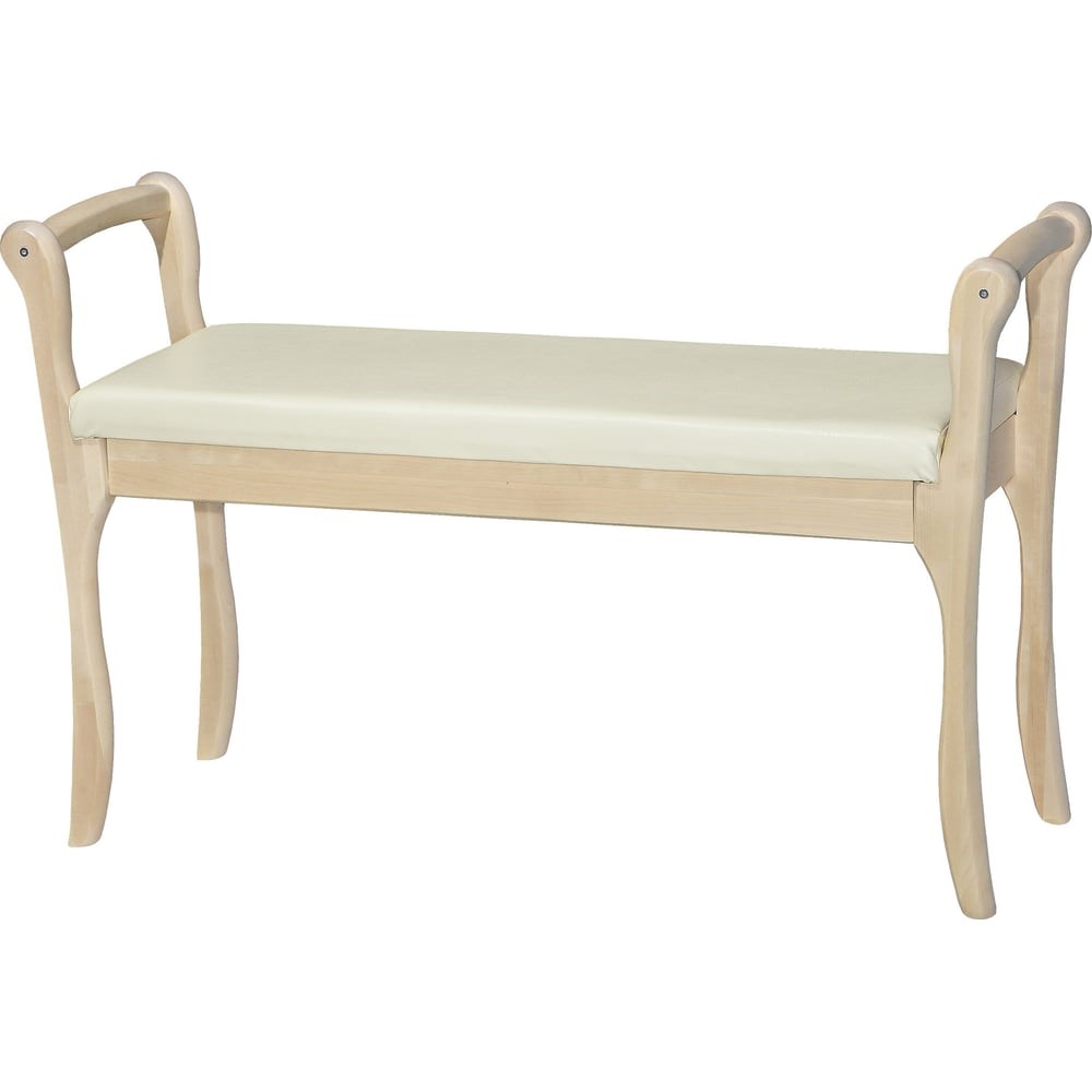 Мягкая скамья для прихожей с подлокотниками Мебелик экокожа крем, каркас лак 7569 – традиционная метровая скамья в прихожую в квартиру, или на дачу с подлокотниками, дополнена мягкой подушкой. Каркас из натурального массива легкий и прочный, поддается реставрации подручными средствами. Подлокотники делают скамью более комфортной при сидении, позволяют легко переносить её с места на место, и придают внешнему виду законченность и основательность. Мягкая подушка из износоустойчивого материала. Скамья поставляется в разобранном виде, её легко перевезти и собрать.