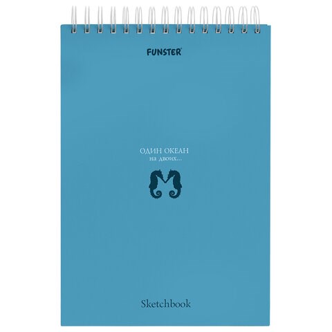 Скетчбук, белая бумага 100 г/м2, 140х201 мм, 60 л., гребень, жёсткая подложка, FUNSTER (ФАНСТЕР), АССОРТИ Ocean, 116902