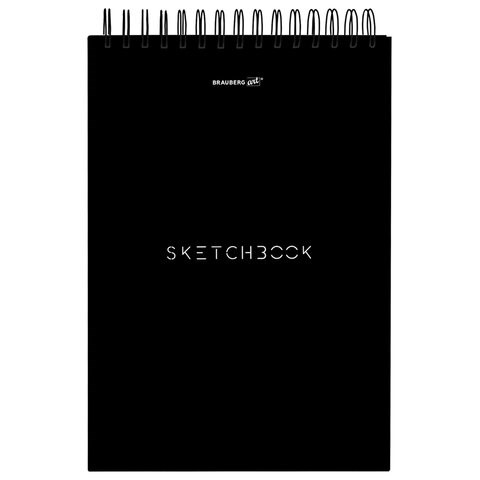 Скетчбук, белая бумага 100 г/м2, 140х201 мм, 60 л., гребень, жёсткая подложка, BRAUBERG ART, Minimal черный, 116900