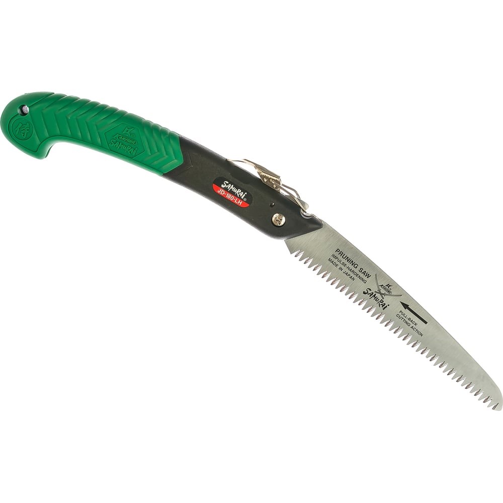 Пила складная, с прямым полотном, L=180мм/4мм, SAMURAI JD-180-LH пригодится при уходе за садовыми кустарниками и некрупными деревьями, на рыбалке или в турпоходах. Используется для распила некрупных деревьев и сухой древесины, обрезки веток, в том числе, деликатного удаления мелких веток. Утонченное зауженное полотно, острые зубья, заточенные в трех плоскостях и закаленные током, а также эргономичная рукоятка обеспечивают комфортную эффективную работу. Пила отлично справляется с осуществлением обратного реза, лучшие результаты демонстрирует при работе ниже уровня плеча. Изделие имеет продолжительный ресурс работы. Складная конструкция обеспечивает безопасное ношение и транспортировку.