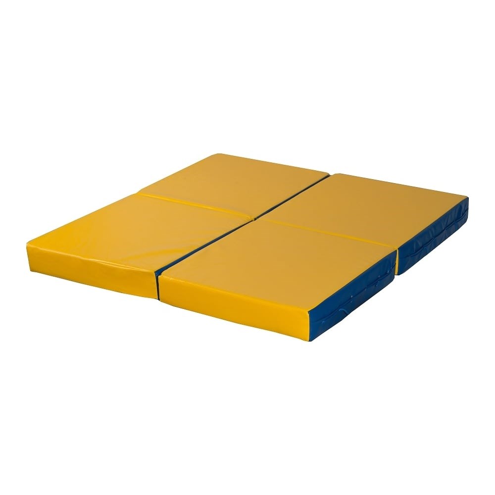Складной мат КМС № 11, 100х100х10 см, 4 сложения, сине/жёлтый СГ000002635 обеспечивает защиту взрослых и детей от ссадин и ушибов во время тренировок или активных игр. Выполнен из винилискожи, которая является экологически чистым материалом. Она устойчива к солнечным лучам, разрывам, истриранию, поэтому прослужит долго.