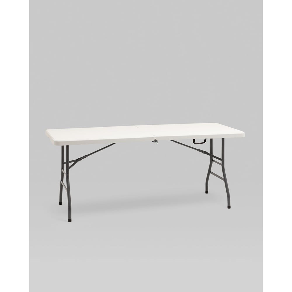 В числе преимуществ, которыми обладает этот складной пластиковый стол-книжка, можно назвать выверенные параметры, легкость, прочность и эргономичность конструкции. При длине стола 182 сантиметра, ширине в 74 см и такой же высоте за ним могут разместиться до 14 человек. Благодаря этому стол можно использовать как для выездных деловых и праздничных мероприятий, так и в личных целях на собственной даче или в загородном доме. При этом вес модели – всего 13 кг, что позволяет без проблем загрузить его в автомобиль или перевезти в одиночку. Для каркаса используется стальная труба особой прочности, а столешница выполнена из 100% не переработанного полиэтилена HDPE (полиэтилен высокой плотности). Считается одним из более безопасных видов пластика. HDPE пластик выдерживает высокие нагрузки, не трескается при ударной нагрузке, эластичен в диапазоне температур от –70 до +100 °С.