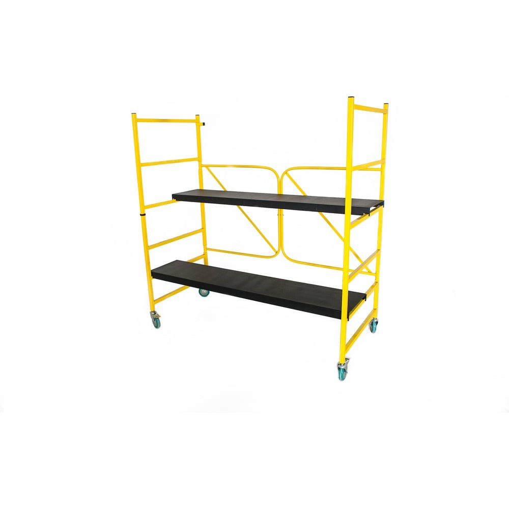 Модель СТ-1.5 является продолжением модели СТ. Ее принципиальное отличие - габаритные размеры. На этом помосте Вы сможете подняться на высоту 150 см, длина также составляет 150 см. Модель представляет собой цельнометаллическую складную несущую раму и две раздельные металлические ступени (опоры). Конструкция имеет качественное полимерное покрытие. Колеса рассчитаны на вес чуть более 200 кг. Петля стопорится в рабочем положении и при необходимости фиксируется болтом. Конструкция выполнена из стали с полимерным покрытием. Для удобства транспортировки по объекту на раме предусмотрены колеса со стопорами. Металлические опоры имеют противоскользящее покрытие, что сделает работу мастера максимально комфортной и безопасной!