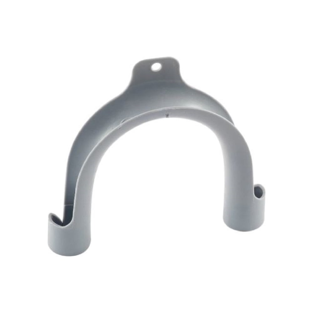 Скоба из прочного пластика 771872 применяется для закрепления сливного шланга в месте изгиба, предотвращая появление заломов. Изделие оснащено ушком для крепежа.