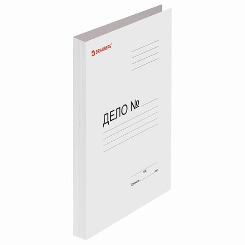 Подходит для документов формата А4 и меньше. Изготовлен из белого мелованного картона плотностью 320 г/м2. Оснащен металлическим механизмом сшивания. Вмещает до 200 листов стандартной плотности. Имеет надпись "Дело №" на обложке. Поставляется в гофрокоробе.