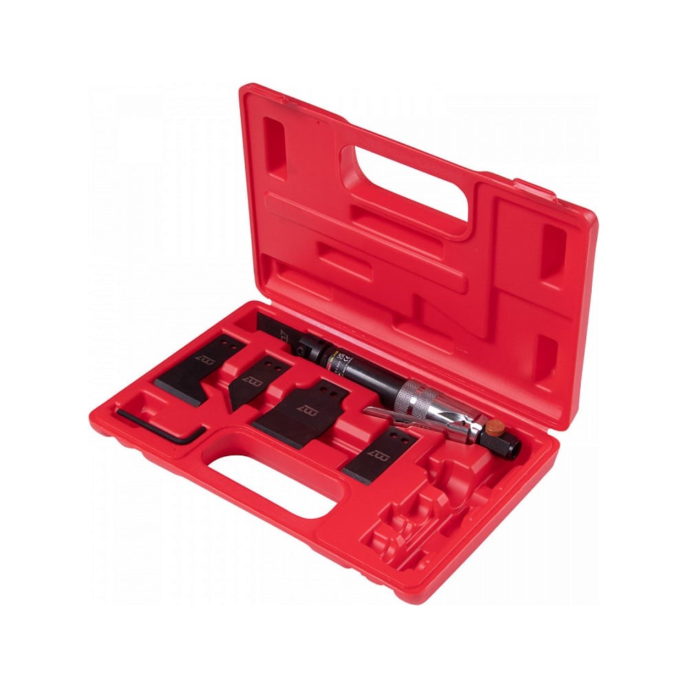 Скребковый пневматический нож с набором насадок MIGHTY SEVEN 6 предметов QK-112N подходит для удаления старых прокладок, уплотнителей, краски, герметика и других материалов. Применение ножа позволяет не только сэкономить время и силы, но и значительно повышает качество и производительность работы. Поставляется в удобном кейсе. Рабочий ход - 16 мм.