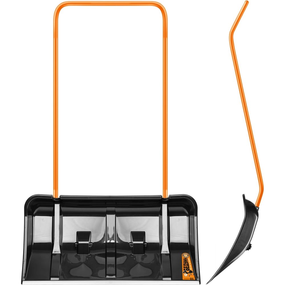 Скрепер для уборки снега Центроинструмент Бедуин 0365 оснащен П-образной рукояткой, выполненной из металла. Совок дополнен двумя колесами для удобства перевозки снега и быстрой работы. Скрепер выполнен из морозоустойчивого пластика.
