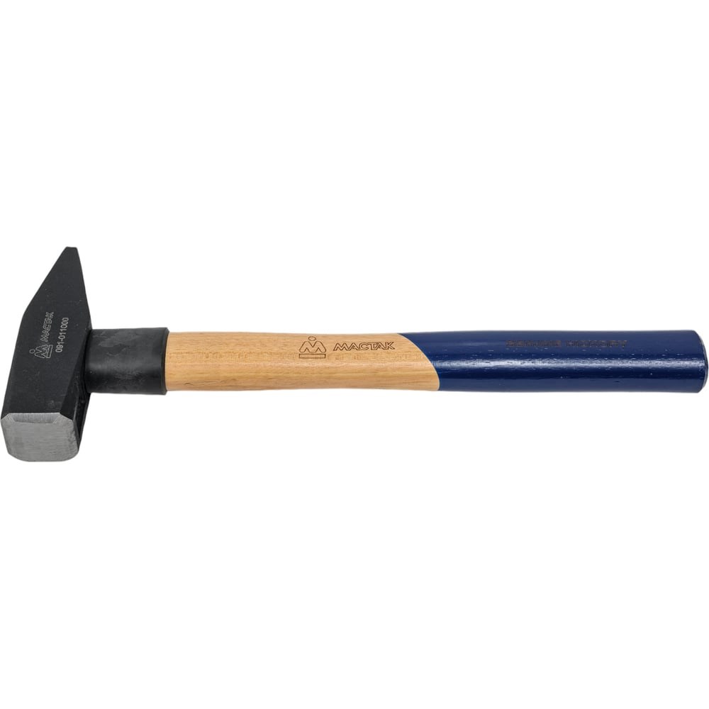 Слесарный молоток 1000г МАСТАК 091-011000 - ручной инструмент для ударных работ, состоящий из стального двустороннего бойка и эргономичной деревянной рукояти породы древесины гикори. Голова и рукоятка крепко зафиксированы между собой при помощи защитного нейлонового кольца, что снижает риск слетания бойка в процессе работы.