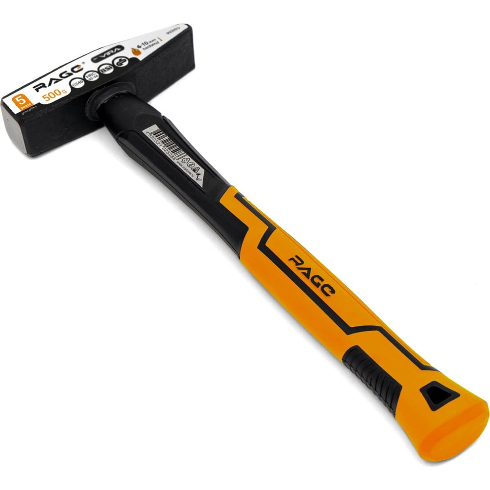 Молоток слесарный 500 г RAGE by VIRAМолоток слесарный RAGE by VIRA с фиберглассовой ручкой. Слесарный молоток служит для забивания крупных и мелких гвоздей, для сборки и демонтажа конструкций из дерева, обработки металлов. Боёк выполнен из инструментальной стали CS45. Рабочая часть молотка плотно соединена с рукояткой и ощущается как её продолжение. Эти части практически невозможно разделить. Твердость бойка: 50-54 HRC. Молоток слесарный RAGE by VIRA также, соответствует немецкому стандарту DIN. Наши специалисты поработали над усилением закалки инструмента с исходных 2-6 мм до 4-10 мм. Боёк стал меньше разрушаться при ударах. Рукоятка из фибергласса прочна, но легка. При использовании многократной намотки, из этого сырья изготавливают парусные мачты, автомобильные глушители и велосипедные рамы. Фибергласс не рассыхается, не гниет, не реагирует на воздействие кислот. Ещё одно преимущество материала – его способность гасить передающиеся удары, а значит вы меньше отобьете руки работая с металлом. Покрытие из термопластичной резины TPR мягкое наощупь и не дает рукоятке скользить в ладони.Характеристики:Длина (мм): 365Вес бойка (г): 500Общий вес (г): 680Материал бойка: инструментальная сталь CS45Твердость (HRC): 50-54Материал рукоятки: стержень-фиберглассМатериал покрытия топорища: ABS-пластик, термопластичная резина (TPR)Применение: для забивания крупных и мелких гвоздей, сборки и демонтажа конструкций из дерева, обработки металлов