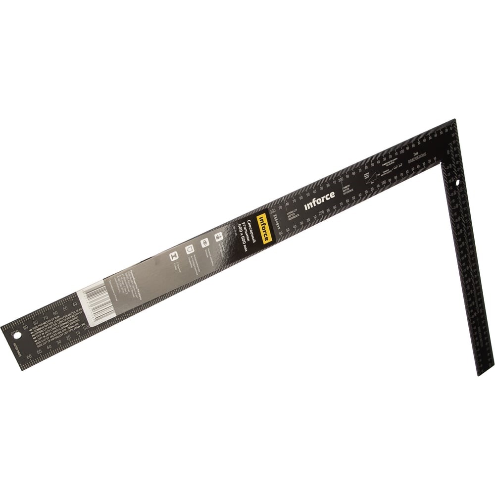 Слесарный угольник 400x600 мм Inforce 06-11-68 удобен для откладывания прямых линий, параллельных или перпендикулярных основным направлениям детали. Прочный профиль препятствует изгибанию инструмента, что позволяет сохранить высокую точность измерений.