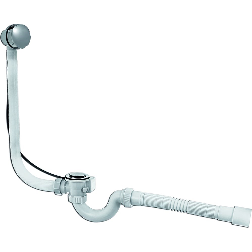 Слив-перелив для ванны VIRPLAST Мини Элит полуавтомат вентиль и клапан латунь 30980657 подходит для всех видов ванн. Гидрозатвор 50 мм Вентиль и клапан латунь хром Длина перелива 700 мм Выход в канализацию 40/50 мм Сифон проточного типа занимает максимум 10 см под ванной