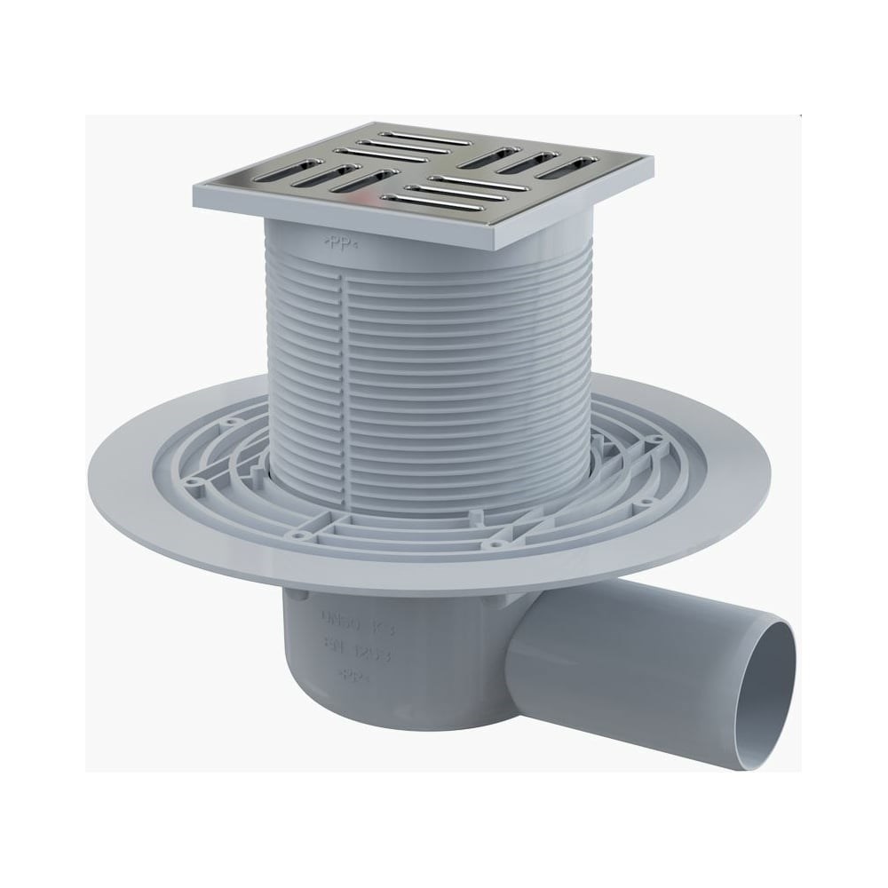 Сливной трап Alcadrain APV101 105х105/50, подводка – боковая, решетка латунь – хром 00026599 дополнительные характеристики: Скорость стока через решетку - 46 л/мин. Гидрозатвор - 51 мм Сопротивление гидрозатвора - 480 Па Класс нагрузки K3 - 300 кг Общая высота монтажа: 88 – 174 мм