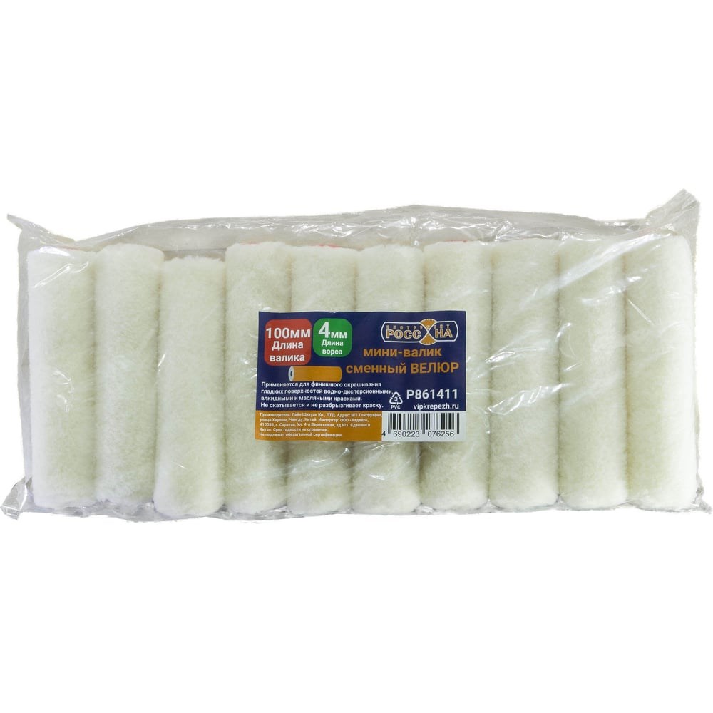 Сменный мини-валик “ВЕЛЮР” РОССНА шириной 100 мм предназначен для лакировочных работ на гладких поверхностях. Подходит для использования со всеми типами лаков и красок. Диаметр: 16 мм. Диаметр бюгеля: 6 мм. Высота ворса: 4 мм. Материал шубки: полиакрил, шерсть.