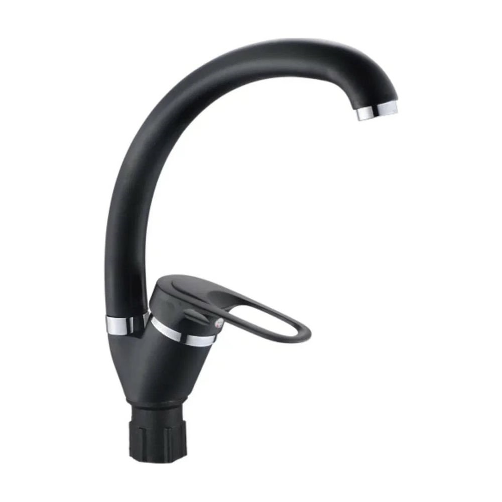 Смеситель для кухни АНТЕЙ®, серия Гранит - Цвет: черный - Картридж: ø40 мм, с керамическими пластинами - Излив: высокий, поворотный (360°) - Высота (корпус + излив): 219 мм - Аэратор: пластиковый, съемный, наруж. резьба Ø24 мм В комплекте: гибкая подводка ½ дюйма 350 мм – 2 шт., монтажный комплект – гайка
