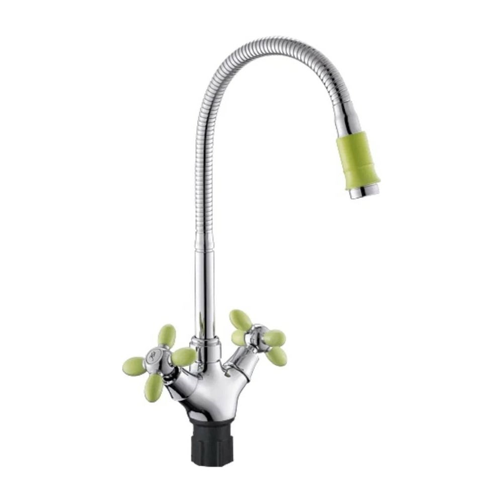 Смеситель для кухни Антей Радуга с 2-мя рукоятками, с высоким гибким изливом, зеленый 5870714-ANT
