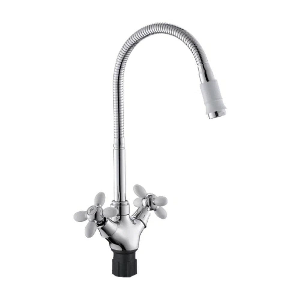 Смеситель для кухни АНТЕЙ®, серия Радуга - Цвет: хром + белый - Кран-букса: 1/2" дюйма 20 шлиц, латунная с керамическими пластинами, угол поворота 90° - Излив: высокий, поворотный (360°), гибкий - Высота (корпус + излив): 287 мм - Аэратор: пластиковый, съемный, внутр. резьба Ø22мм В комплекте: гибкая подводка ½ дюйма 350 мм – 2 шт., монтажный комплект – гайка
