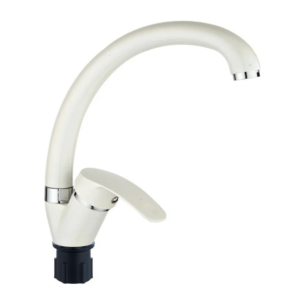 Смеситель для кухни АНТЕЙ®, серия Зима - Цвет: белый - Картридж: ø35 мм, с керамическими пластинами - Излив: высокий, поворотный (360°) - Высота (корпус + излив): 225 мм - Аэратор: пластиковый, съемный, наруж. резьба Ø24 мм В комплекте: гибкая подводка ½ дюйма 350 мм – 2 шт., монтажный комплект – гайка