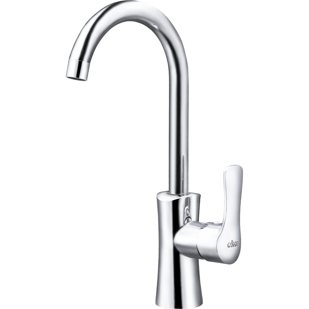 Смеситель для кухни Ekko с гайкой E40056 предназначен для крепления на изделие или прилегающую поверхность столешницы. Это уникальная модель, которая подходит для кухонных моек, раковин. Изготовлен из силумина, с покрытием хром. Высокий поворотный излив оснащен аэратором, который существенно понижает уровень шума. Смеситель крепится к раковине с помощью накидной гайки, которая располагается под мойкой. Она накручивается на нижнюю часть цилиндрического корпуса самого крана, которая располагается под раковиной. Управление водой производится при помощи керамического картриджа размером 35 мм. Смесители Ekko это технологии, дизайн и качество по доступным ценам. Продукция производится на современных станках с числовым программным управлением. Высокоточные линии литья и обработки, а также использование современных материалов позволяют гарантировать высокий уровень качества продукции.