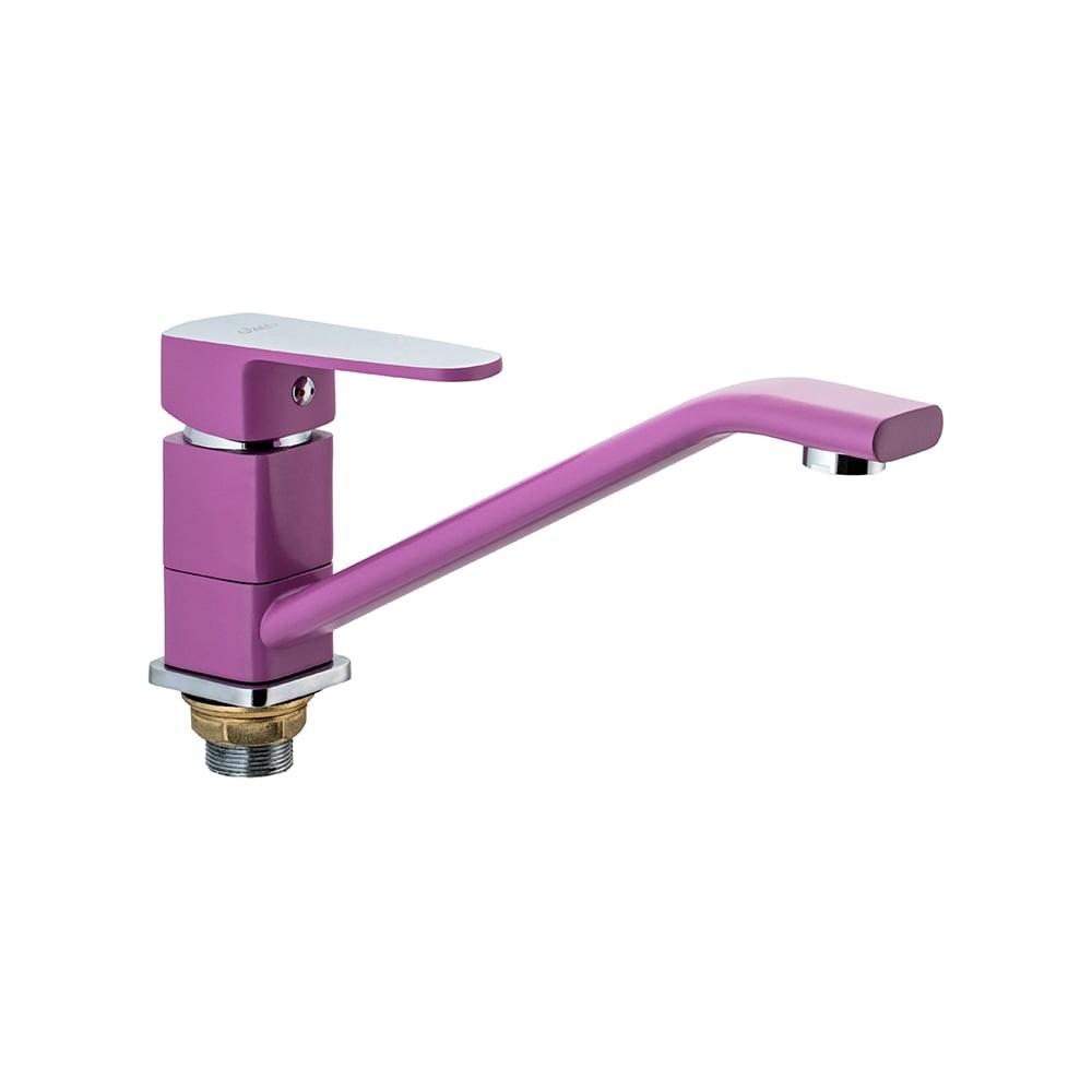 Смеситель для кухни Ekko с гайкой, фиолетовый E49302 предназначен для крепления на раковину или прилегающую поверхность столешницы. Подходит для разных интерьеров и типов моек. Поворотный излив оснащен аэратором, который существенно понижает уровень шума. Крепится с помощью накидной гайки, которая накручивается на нижнюю часть цилиндрического корпуса самого крана, которая располагается под раковиной. Управление водой производится при помощи керамического картриджа размером 35 мм, который обеспечивает точную настройку напора воды.