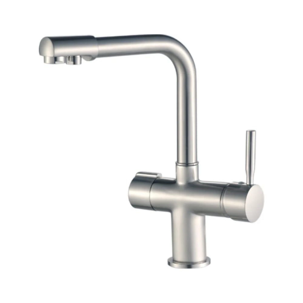 Смеситель для кухни с высоким поворотным изливом и подключением к фильтру с питьевой водой, изготовлен из качественной нержавеющей стали с использованием современных технологий, что обеспечивает прочность корпуса смесителя. Керамический картридж 35 мм всемирно известной испанской фирмы Sedal обеспечивает точную настройку температуры и напора воды. Продукция соответствует европейским стандартам СЕ, немецкому DVGW, английскому WARS, французскому ASC, международным стандартам систем менеджмента качества IS0 9001, экологической эффективности ISO 14001 и поставляется в более 100 стран мира. Вся продукция тестируется давлением в 10 атмосфер.