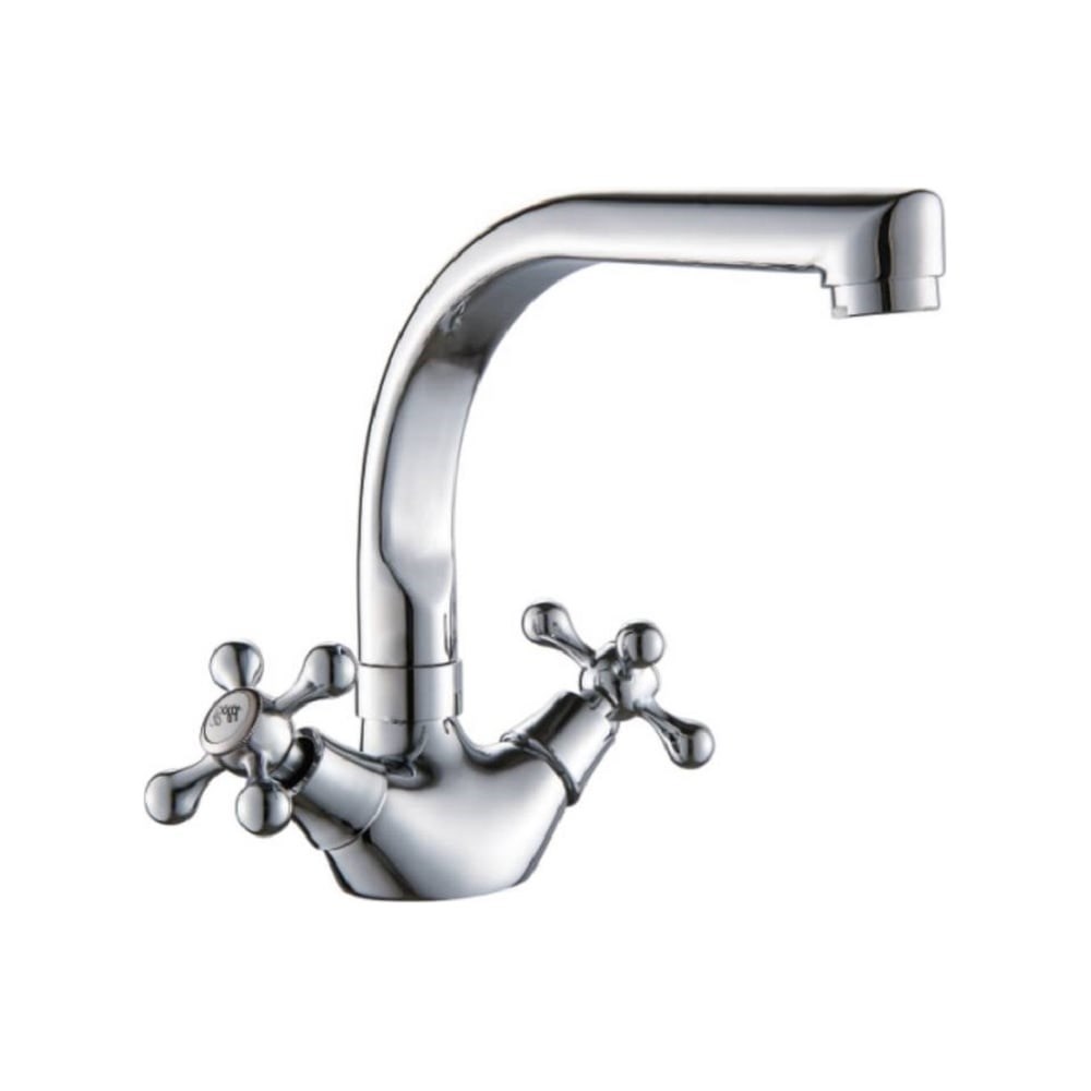 Смеситель для кухни двухвентильный, с высоким поворотным изливом (угол поворота 360 градусов). Покрытие хром Аэратор с функцией лёгкой очистки Кран-буксы латунные с керамическими пластинами Тип крепления смесителя - шпилька
