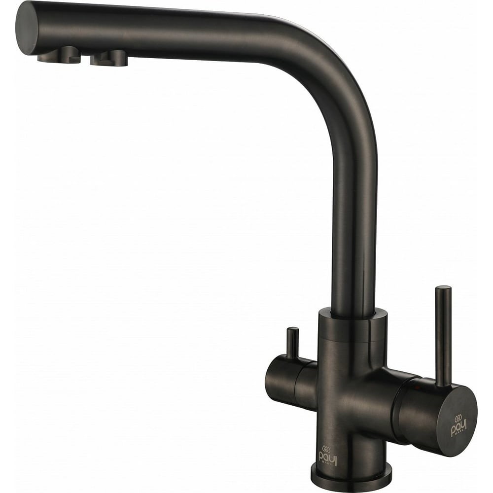 Смеситель для кухни ESSEN Es213011-GM. Изготовлен из высококачественной латуни, которая отвечает высочайшим европейским стандартам качества, не содержит свинца, не разрушается со временем и безопасна для здоровья. Излив, способный на вращение 360 градусов, обеспечивает удобство использования. Конструктивная технология Trinkwasser предусматривает поступление фильтрованной воды, которая не смешивается с водопроводной. Фильтрованная вода подается через отдельные трубку и аэратор. Гарантия на смесители Paulmark 5 лет.