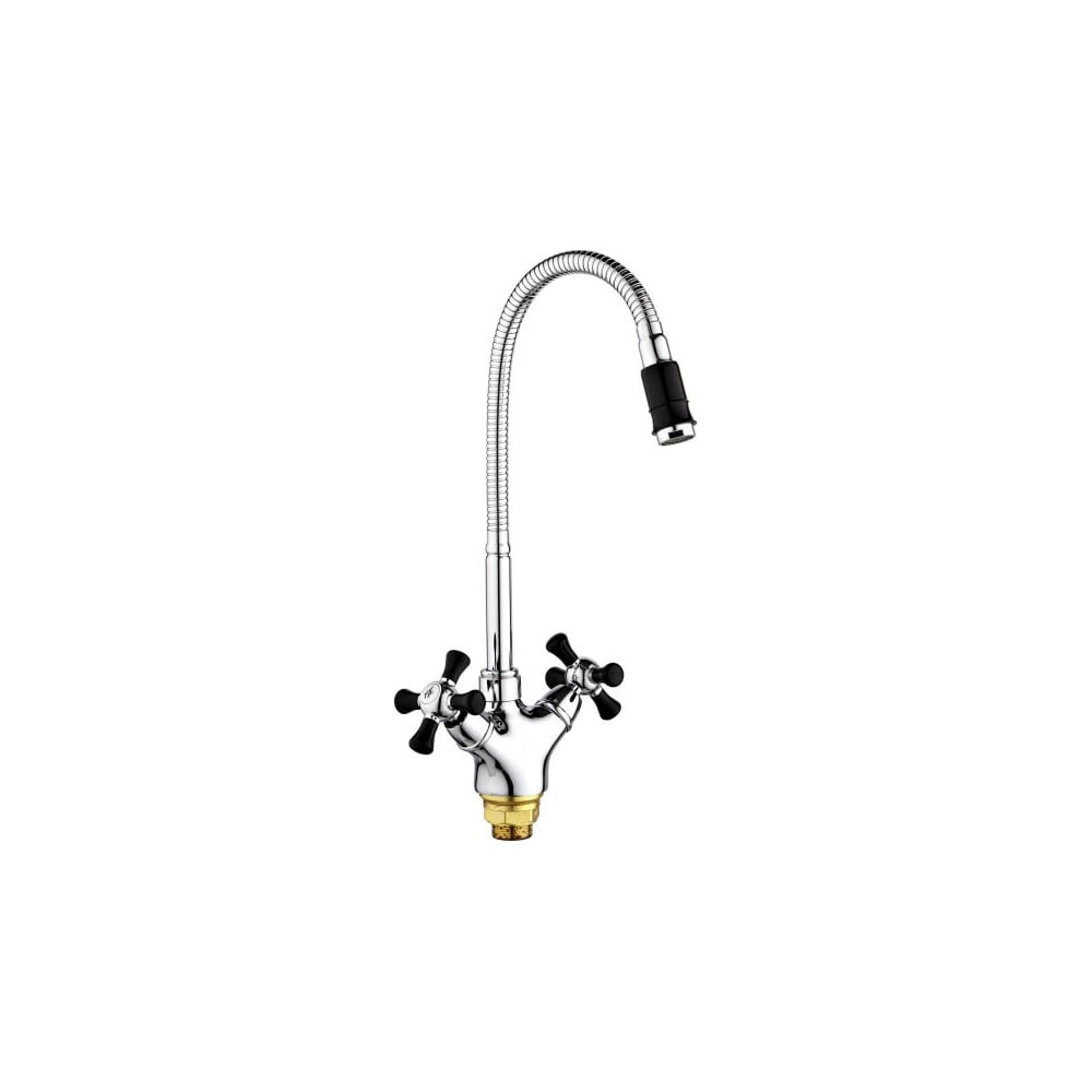Функциональный двуручковый смеситель для кухни с высоким гибким изливом порадует оригинальными цветовыми фрагментами оформления и станет стильным решением для вашего интерьера. Смеситель для кухни выполнен в современном дизайне. Он удачно дополнит мойку любого размера и конфигурации. Покупка водосберегающего смесителя 2.0 РМС - выгодное и практичное решение. С ним вы уменьшите плату за воду. Наш смеситель полностью окупает свою стоимость. Со смесителем 2.0 новой линейки РМС вы снизите расход воды до 50%.Смеситель превращает воду на выходе в воздушно-водную смесь, при этом диаметр струи и сила напора сохраняется. Смесители РМС официально признаны самыми экономичными и занесены в Реестр рекордов России. Пользоваться смесителем РМС 2.0 удобно и приятно. Струя смесителя, образует меньше брызг, а значит, уборка на кухне легче и быстрее. Пузырьки воздуха помогают быстрее и эффективнее удалять загрязнения, поэтому моющих средств расходуется меньше. Новые смесители РМС - российская разработка.При производстве смесителей ТМ РМС используются только высококачественные материалы. Все модели проходят процесс гальванизации, что придает им большую износостойкость и улучшает антикоррозийные свойства. Хромированная поверхность не потеряет со временем свой роскошный вид, а уход за ней сводится к протиранию мягкой салфеткой. Установка смесителя крайне проста.Смесители РМС это сертифицированный продукт с 5-летней гарантией. Гибкая подводка идет в комплекте.