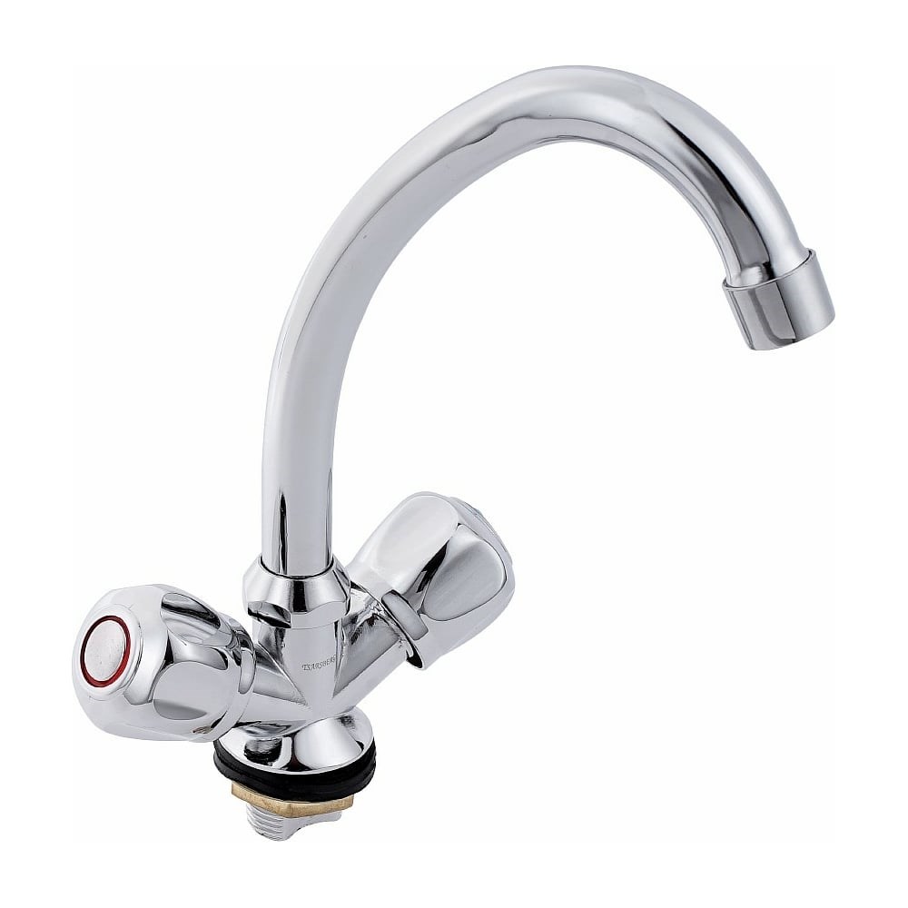 Смеситель для кухни Tsarsberg тип ГОСТ См-МДЦБА TSB-272-30 выполняет функцию смешивания горячей и холодной воды. Изделие изготовлено из ЦАМ (ZAMAK). Смеситель оснащен двумя керамическими кран-буксами. Крепление гайкой.