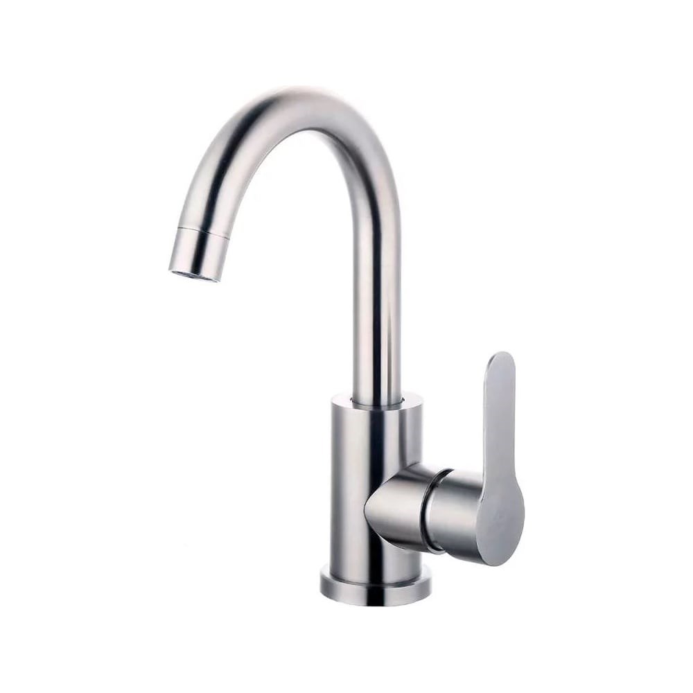 A54001N-1 смеситель для кухни/умывальника, H=242 мм сатин сталь SUS304 картридж D=35 мм излив H=160 мм гибкая подводка: 450 мм в комплекте крепёж: гайка *аналог на замену A54001-1