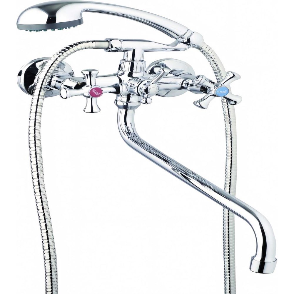 Смеситель для ванны G-lauf с круглым, длинным поворотным изливом 360°, с душевой лейкой, хром QFR7-A827