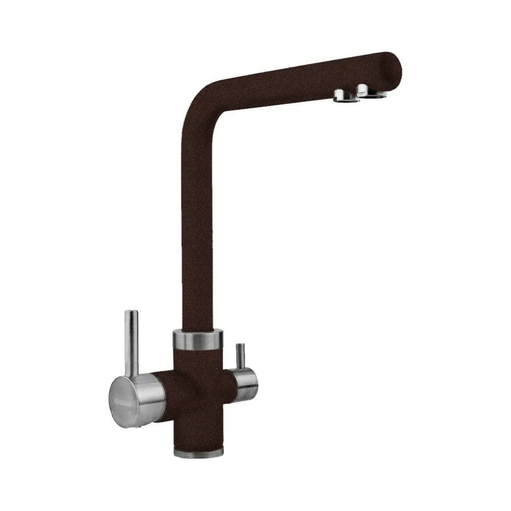 Смеситель произведен из высококачественной латуни, безопасной для здоровья, и оснащен керамическим картриджем, рассчитанным на интенсивную эксплуатацию. Функциональным дополнением модели является возможность подключения фильтра для питьевой воды. Подача фильтрованной воды осуществляется через отдельную трубку и регулируется специальным керамическим переключателем. Толщина стенок корпуса смесителя обеспечивает устойчивость изделия к перепадам давления и температур. Поверхность корпуса гигиенична, легко очищается от любых загрязнений и не требует специального ухода: на ней не остается разводов и отпечатков пальцев. Плавный ход ручки позволяет точно и легко регулировать температуру и напор воды. Аэратор отличается высокой прочностью, не подвержен разрушению, образованию известковых отложений и обеспечивает равномерный и экономичный поток воды.