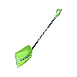 Цветная пластиковая снеговая лопата. Укомплектована съемным алюминиевым черенком с пластиковой ручкой. Предназначена для уборки свежевыпавшего снега на придомовых территориях, дорожках. Габариты ковша и небольшой вес делают её одной из самых востребованных снегоуборочных лопат и позволяют использовать её не только для уборки снега, но и для зерновых работ. Характеристики: материал: первичный блоксополимер полипропилена спец.марки ; накладка: алюминий; ребра жесткости: 3шт; ручка на черенке: пластиковая, V-образная; общая высота изделия: 1420мм;