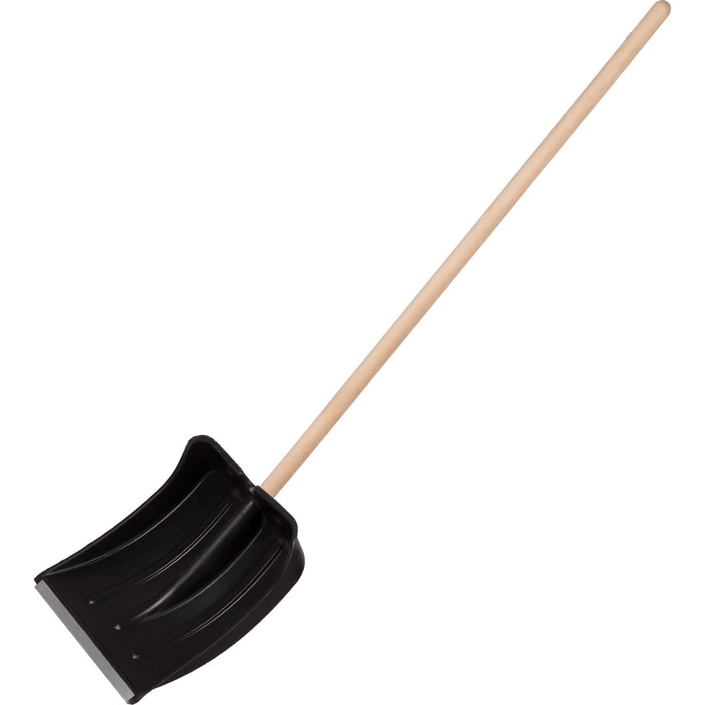 Пластиковая лопата 615745 размером 380 х 385 х 1420 мм, с деревянным черенком предназначена для уборки снега. С ее помощью можно очистить дорожки в загородном доме, выезд из гаража и т.д. За счет длины 1420 мм с ней комфортно работать, так как снижается нагрузка на спину.