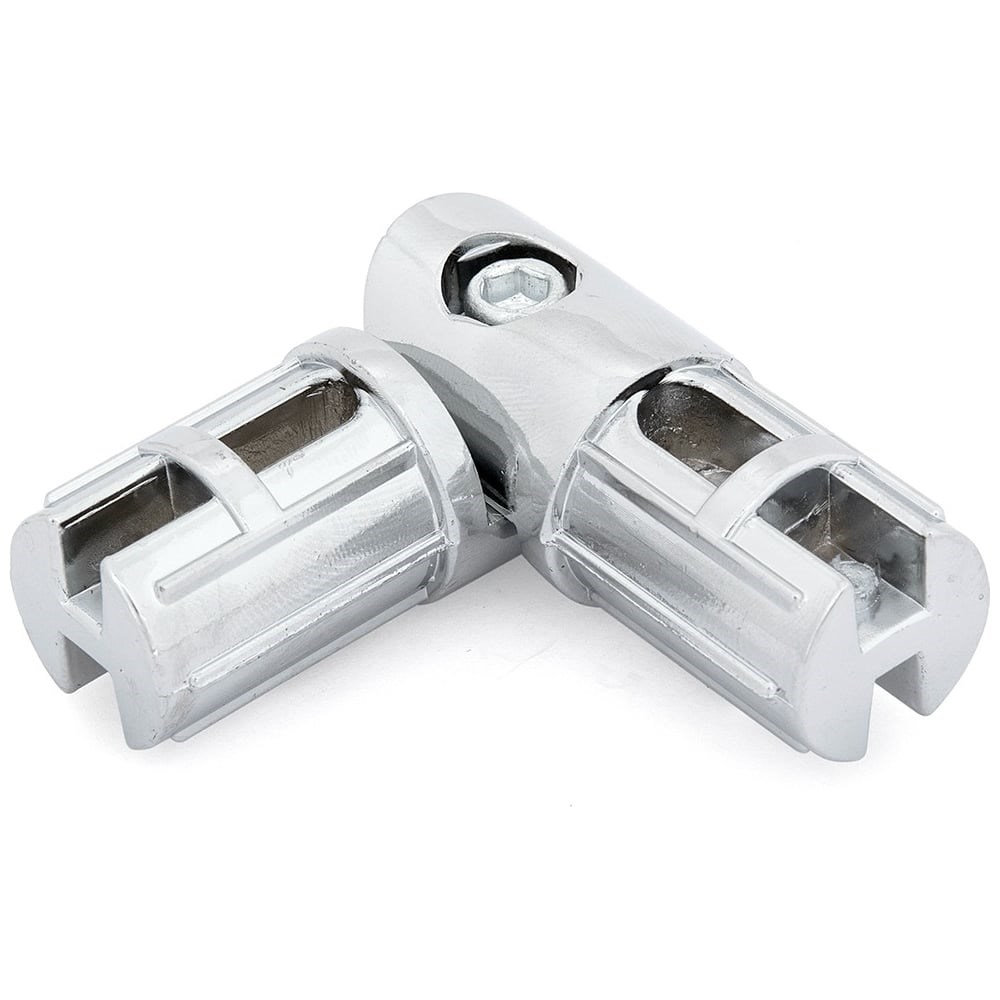 Поворотный соединитель для джокер-систем, состоящий из двух частей. Позволяет скрепить две трубы Ø25 мм под углом, причем угол можно изменять в пределах от 90 до 180°. Как и другой джокерный крепеж, очень прост в использовании. Применение: сбор торгового оборудования, рекламных, выставочных стендов, мебели и т. д. Тип: замок-соединитель поворотный. Диаметр: 25 мм. Продается поштучно. Материал: алюминиевый сплав Покрытие: хром