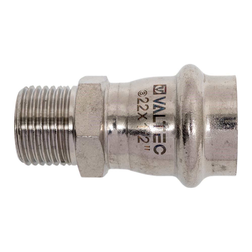 Соединитель пресс-фитинг VALTEC VTi.901.I.002204 предназначена для соединения тонкостенной стальной трубы с другим элементом трубопровода. Наружная резьба имеет насечки для эффективного удержания уплотнителя. Соединение с трубой производится с помощью пресс-инструмента V-профиля. Для быстрого монтажа с помощью гаечного ключа соединитель имеет шестигранный участок. Характеристики: максимальная рабочая температура - 120°С; максимальное давление - 16 бар.