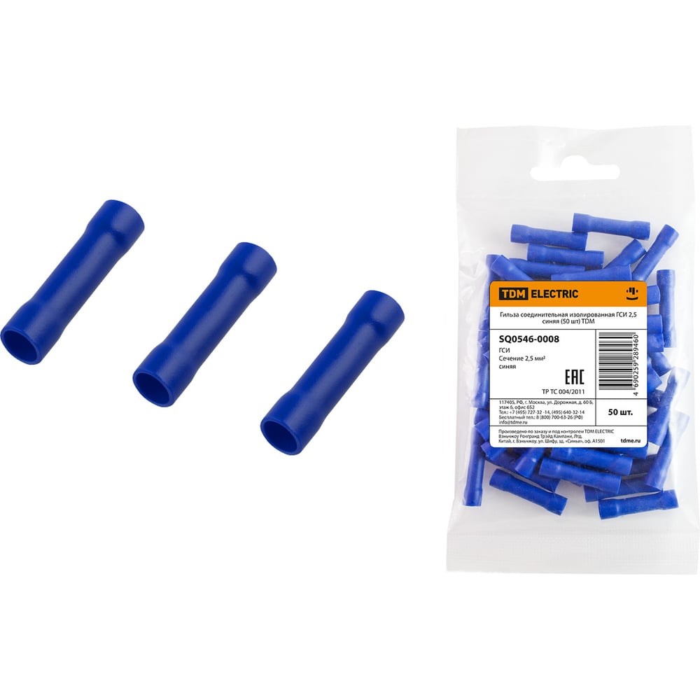 Соединительная гильза TDM ELECTRIC изолированная ГСИ 2,5 синяя 50 шт SQ0546-0008