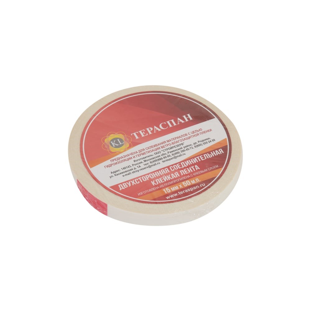 Соединительная клейкая лента на нетканой основе Тераспан KL 50 м.п. 4660077150907 предназначена для склеивания материалов ТЕРАСПАН с целью гидроизоляции и герметизации ветро-влагозащитной пленки ТЕРАСПАН. Соединительная лента ТЕРАСПАН KL наклеивается на верхний край укрепленного полотнища антиадгезионной бумагой вверх (ТЕРАСПАН KL раскатывается с легким прижиманием к нижнему полотну на заданном расстоянии от края). Затем с требуемым по инструкции нахлестом укладывается или раскатывается верхнее полотнище материала. С ленты снимается антиадгезионная бумага и оба полотнища прижимаются друг к другу.