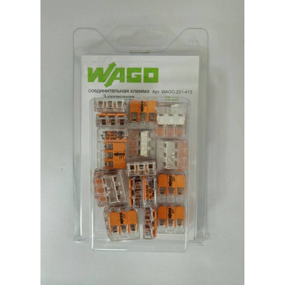 Клемма WAGO 221-413 20 шт. 2546 используется для соединения любых типов медных проводников моножильных и многопроволочных, а также разных сечений. На 40 % меньше, чем клеммы серии 222. У этого способа скрепления есть ряд преимуществ: высокая скорость соединения, надежность и удобство дальнейшей работы с проводами, их обслуживания. Проводящая часть соединителя изготовлена из меди. Специальное отверстие для тестера на тыльной стороне колодки позволяет проверить параметры соединения, не вскрывая корпус. Внимание! Фотография носит иллюстративный характер. Верные параметры указаны в технических характеристиках товара.