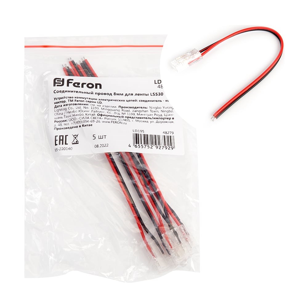 Соединительный провод 10мм для COB ленты шириной 8 мм, LD195 FERON для светодиодной ленты 12/24V LS530.Преимущества: Позволяет подсоединять ленту к блоку питания быстро и без пайки.