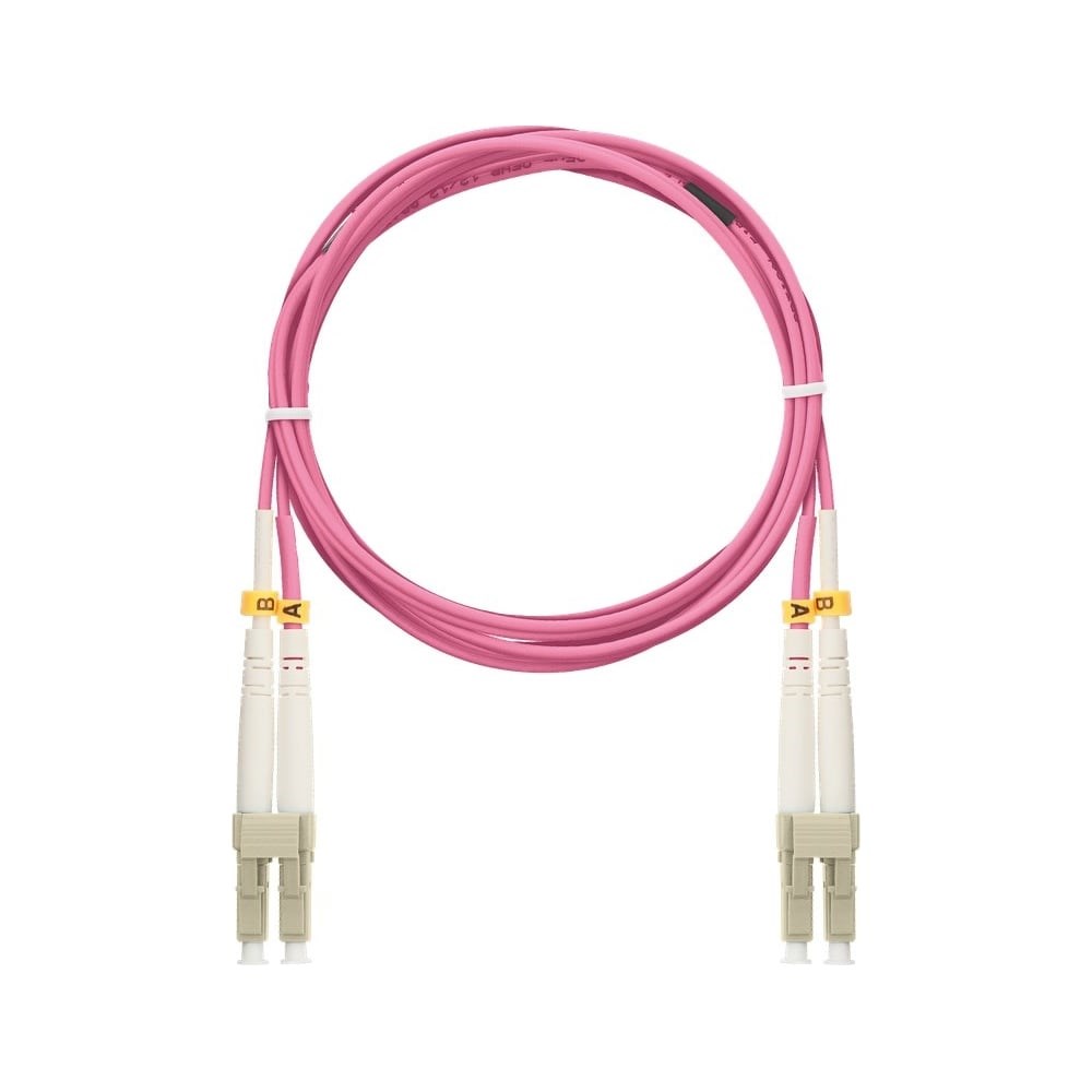 Дополнительные технические характеристики: Материал внешней оболочки - LSZH-компаунд. Исполнение - двойной. Диапазоны температур: хранение от -20 до +65 °C, эксплуатация от -5 до +65 °C. Тип оптического волокна - многомодовое волокно 50/125 (MM). Класс волокна - OM4. Тип коммутационного шнура - соединительный. Коннекторы / полировка - LC/UPC - LC/UPC. Диаметр внешней оболочки, мм - 2. Вносимые потери ≤ 0,3 дБ. Возвратные потери ≥ 50 дБ.