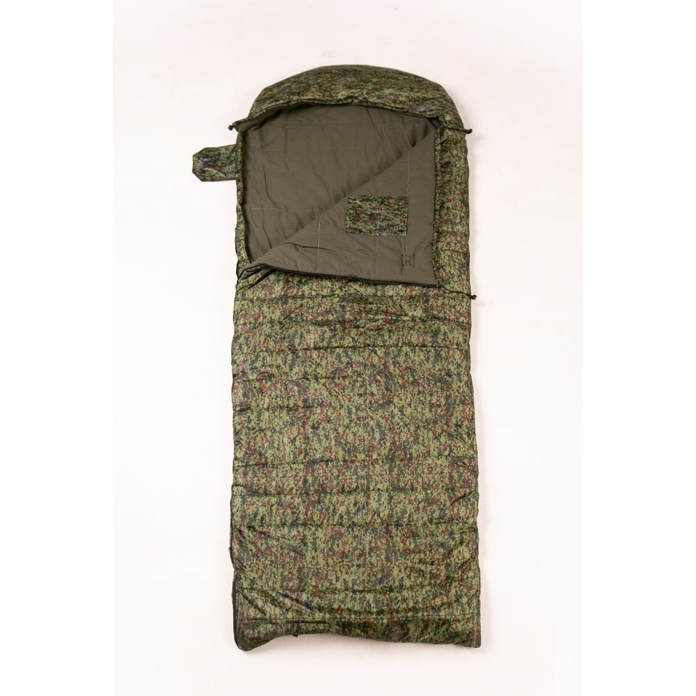 Спальный мешок СмелыйКаспер 220x85, зелёный пиксель, зима 600 90001 - прекрасный вариант для подарка мужчине на 23 февраля и на день рождения и любой праздник. Он идеален для туризма, охоты и рыбалки, отдыха. Может применять как одеяло и подстилка.Верхняя ткань: Оксфорд, легко очищается от загрязнений. Наполнитель: синтепон в сумме 600 г/м2, уложен в 2 слоя по 300 г/м2 и прошит, что исключает неровности и пустоты внутри спальника. Увеличенная толщина наполнителя придает повышенный комфорт и тепло. Внутренняя ткань: Бязь, способствующая сохранению тепла внутри спальника при минусовых температурах.Благодаря надежной молнии два мешка можно соединить между собой и получится одеяло размером 200 х 340 см. Для удобства перемещения и транспортировки в комплекте есть дополнительный чехол.Внутри по низу спального одеяла имеется вставка из Оксфорда, что позволяет находится в спальнике прямо в обуви.Для практичности внутри универсального мешка имеется карман на липучке, в который с легкостью поместится телефон, или любой другой малогабаритный предмет.Молния тип 8 снабжена перекидным бегунком, позволяющим расстегнуть спальник как изнутри, так и снаружи. Удобный капюшон оснащен шнуром для затягивания.