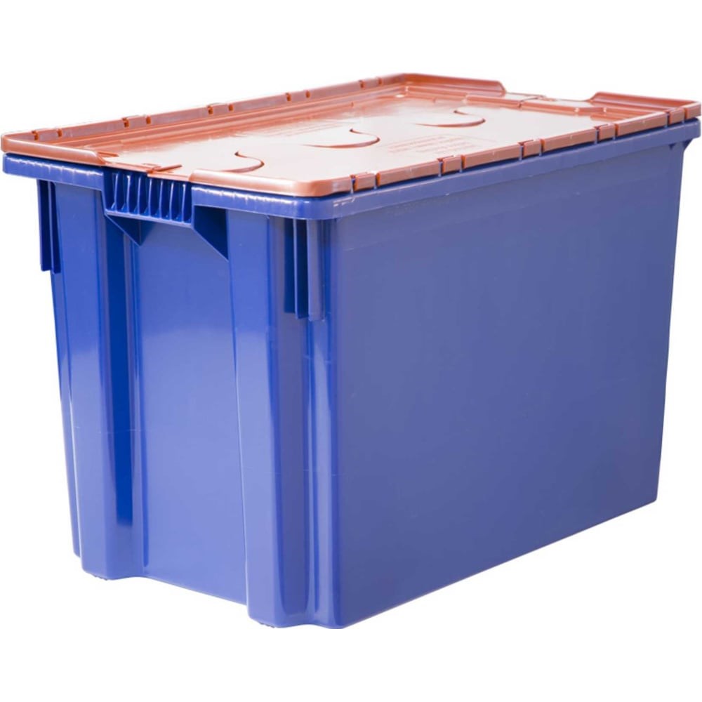 Ящик с крышкой п/э 600х400х400 сплошной, синий с оранжевой крышкой Тара.ру 18657 удобен в использовании: прочные стенки, крышка, ребра жесткости. Модель подойдет для хранения и транспортировки продукции любого назначения.Большой объем достаточен практически для любых товаров.
