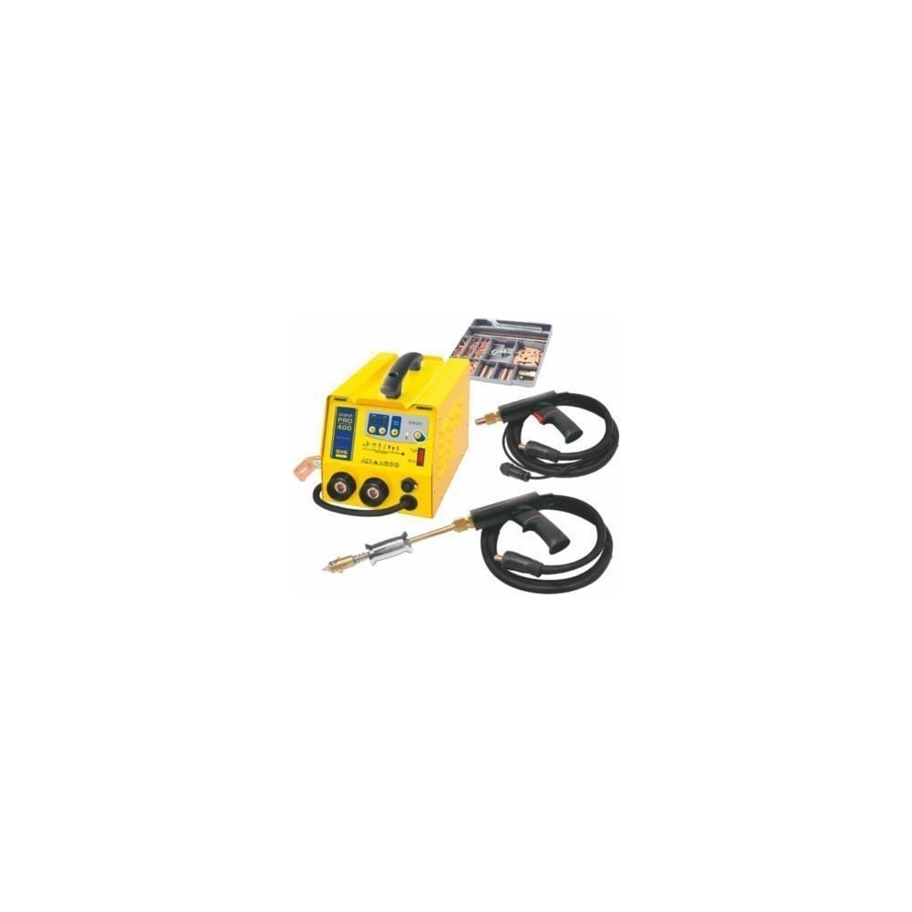 Споттер с двумя пистолетами GYS 3800А, 380В. 052185 облегчает работу в автомастерских и на производстве. Обеспечивает точное соединение деталей без повреждения металла. Можно использовать при правке кузовных деталей. Оборудование эффективно при работе с алюминием и сталью. Высокая мощность обеспечивает точную сварку в нужном месте.