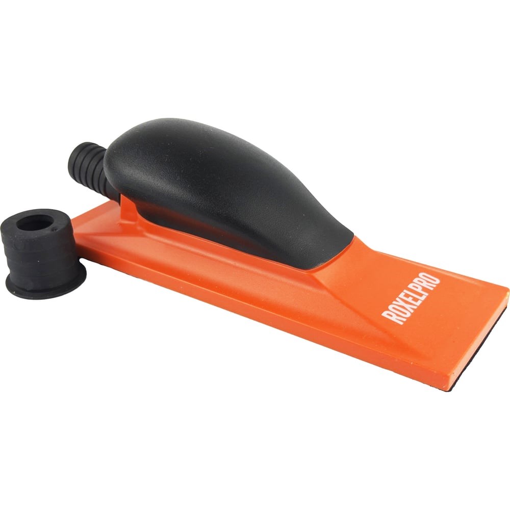 Средний шлифок RoxelPro 196622 имеет 22 отверстия и применяется при ручном шлифовании с использованием шлифовального материала размером 70 x 198 мм. Изделие состоит из колодки, выполненной в эргономичном дизайне и идеально ровной шлифовальной подошвы, снабженной липучкой Velcro для крепления шлифовальных полосок.