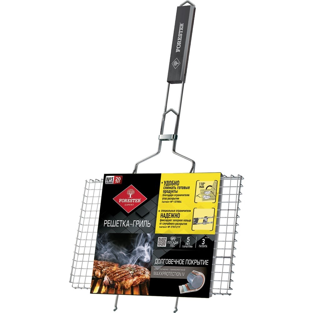 Решетка-гриль Forester средняя, 26x40 см BQ-N01/2 поможет быстро приготовить мясо, рыбу, птицу и овощи-гриль на открытом огне. С помощью специальных изогнутых усиков легко и надежно зафиксировать решетку на мангале. Удобная деревянная ручка убережет руки от ожогов. Решетка-гриль выполнена из высококачественной стали с нанесением двойного антикоррозийного покрытия. Можно не беспокоиться, что крышка откроется, ведь на ручке расположено специальное широкое кольцо-фиксатор. Благодаря усовершенствованному дизайну и наличию специального ограничителя угла раскрытия, без чьей либо помощи можно снять приготовленные продукты с решетки на весу, не запачкав стол или другую поверхность. Решетка-гриль имеет однонаправленное плетение прутьев на каждой плоскости, поэтому легко моется.