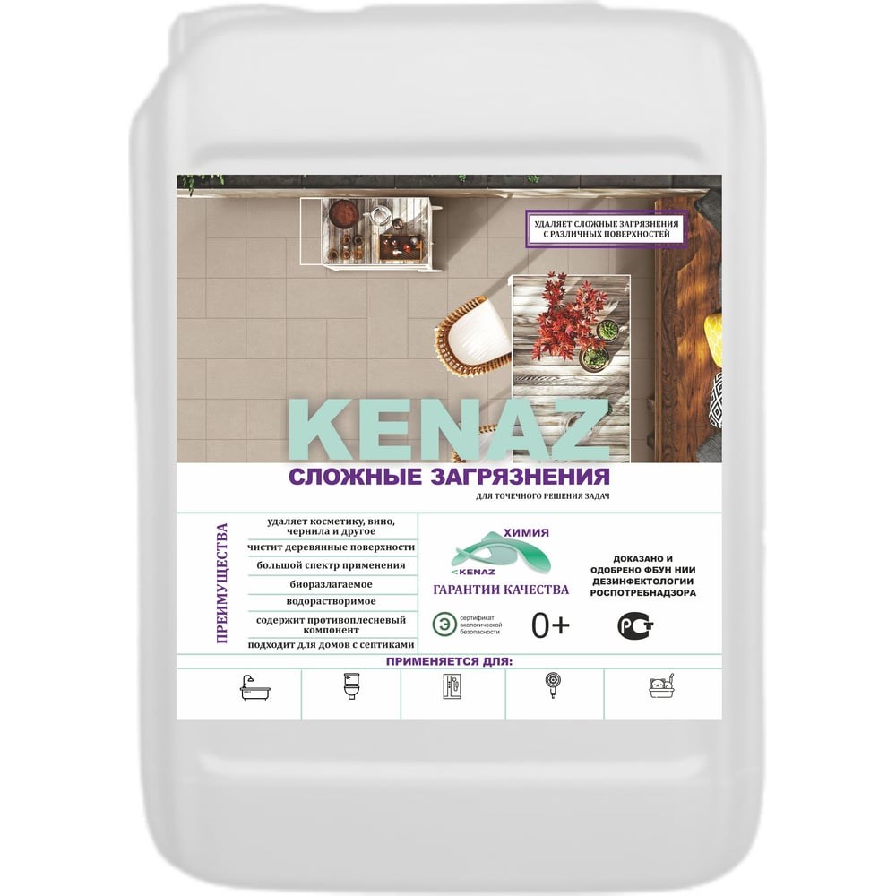 Универсальное средство КЕНАЗ сложные загрязнения, для уборки дома, пятновыводитель для одежды, очиститель салона, 5 л 809912стирает и чистит весь дом. Очистит мебель, обувь, посуду, отстирает траву, кровь, вино, косметику и тд. И ещё более 30 способов применения. Выводит сложные пятна и загрязнения, результат заметен после 1 применения. Пятновыводитель можно использовать в различных хозяйственных сферах. Безопасен для белых и цветных тканей. Удалит желтые следы от пота. Средство подходит для мытья полов и всех поверхностей. Подходит для ухода за автомобилем, как внутри салона, так и снаружи, отмоет диски колес и очистит салон от сложных и легких жировых загрязнений. Безопасен для мытья детской мебели, одежды. игрушек и других изделий. Без отдушек и красителей, гипоаллергенный, не содержит хлор, подойдет для людей с чувствительной кожей.Инструкция:Смочите поверхность водойНанесите средствоОставьте на 5-10 минСмойте водойВажно: Ограничения по времени воздействия до 2 мин для алюминиевых, цинковых, хром-никелевых, стеклянных, лако-красочных поверхностей. Используйте перчатки. Полностью смываемое и биоразлогаемое средство, содержит антиплесневый компонент, подходит для домов с септиком. Канистра 5 литров удобна в хозяйстве и ее объема хватит надолго. Обеспечьте чистоту всего дома одним средством КЕНАЗ сложные загрязнения.